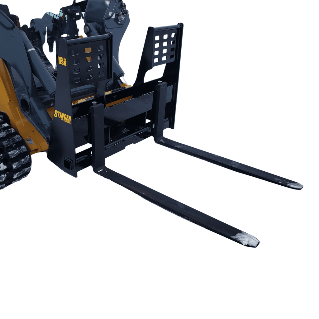 Don't Kill Your Lift Capacity: Every pound of attachment weight is one less pound you can lift. Standard skid steer forks weigh nearly 500 lbs, eating up half the payload of a sub-compact tractor. The Stinger Compact Pallet Forks are engineered to be Lightweight (300 lbs) without sacrificing strength. This gives you back 200 lbs of lifting power for gravel, mulch, or hay.