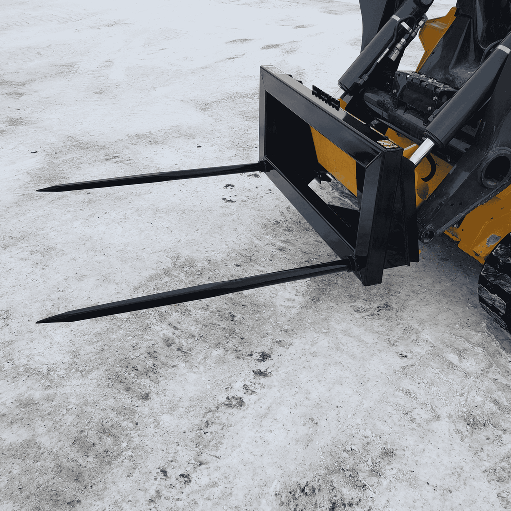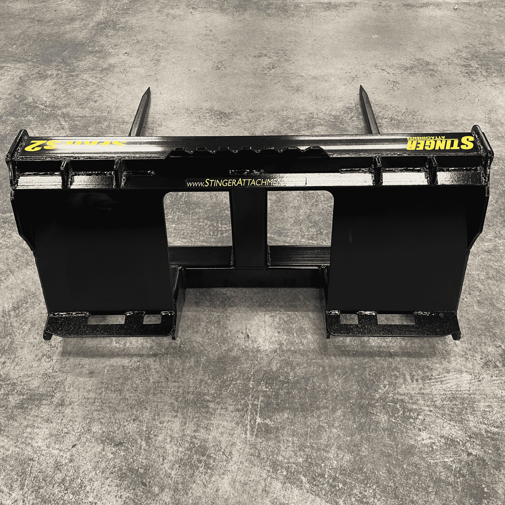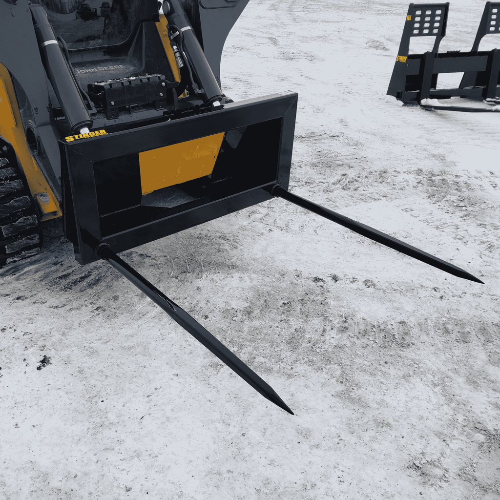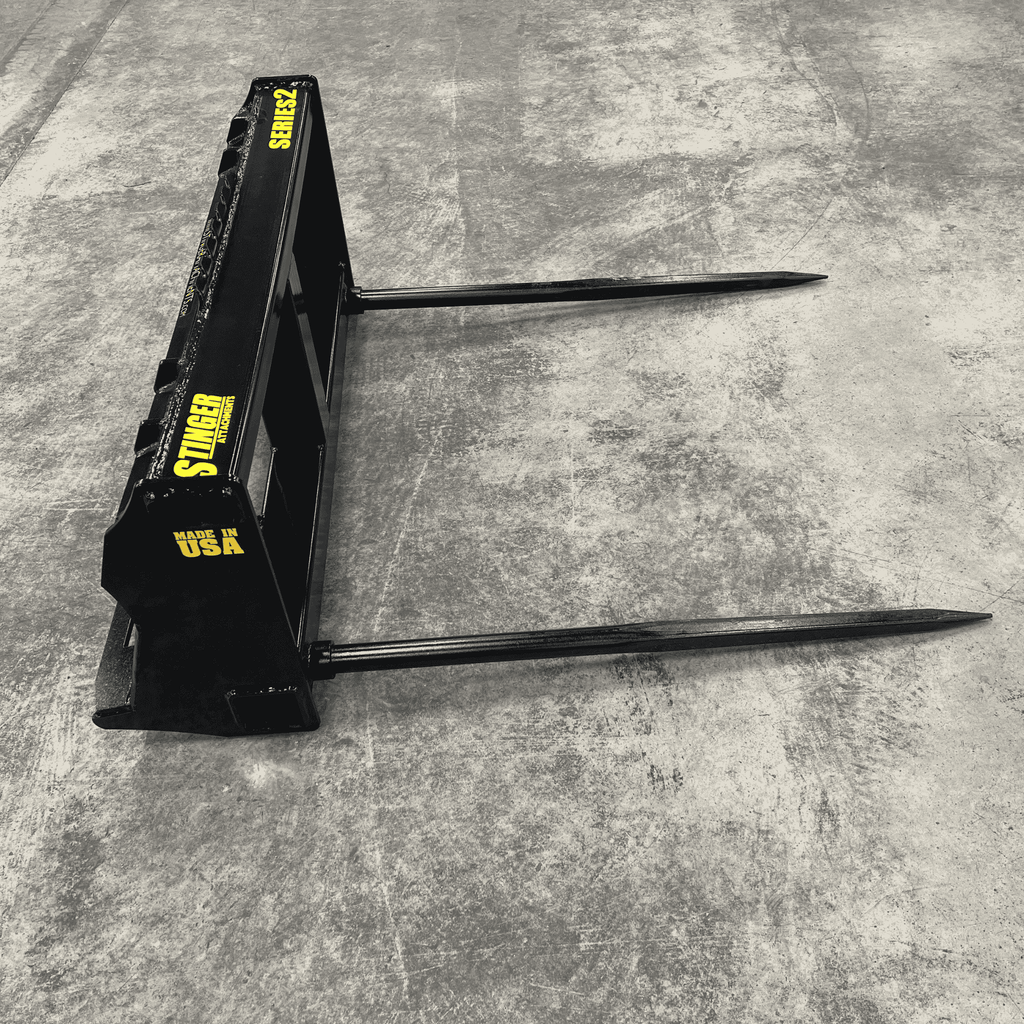 The Stinger Series 2 (Double Spear) is designed for operators who need speed and stability. Unlike single-spear designs where the bale can spin or shift during transport, the Series 2 utilizes two parallel Conus 2 spears spaced 39" apart. This locks the bale in place, allowing you to move faster across uneven terrain without losing your load.