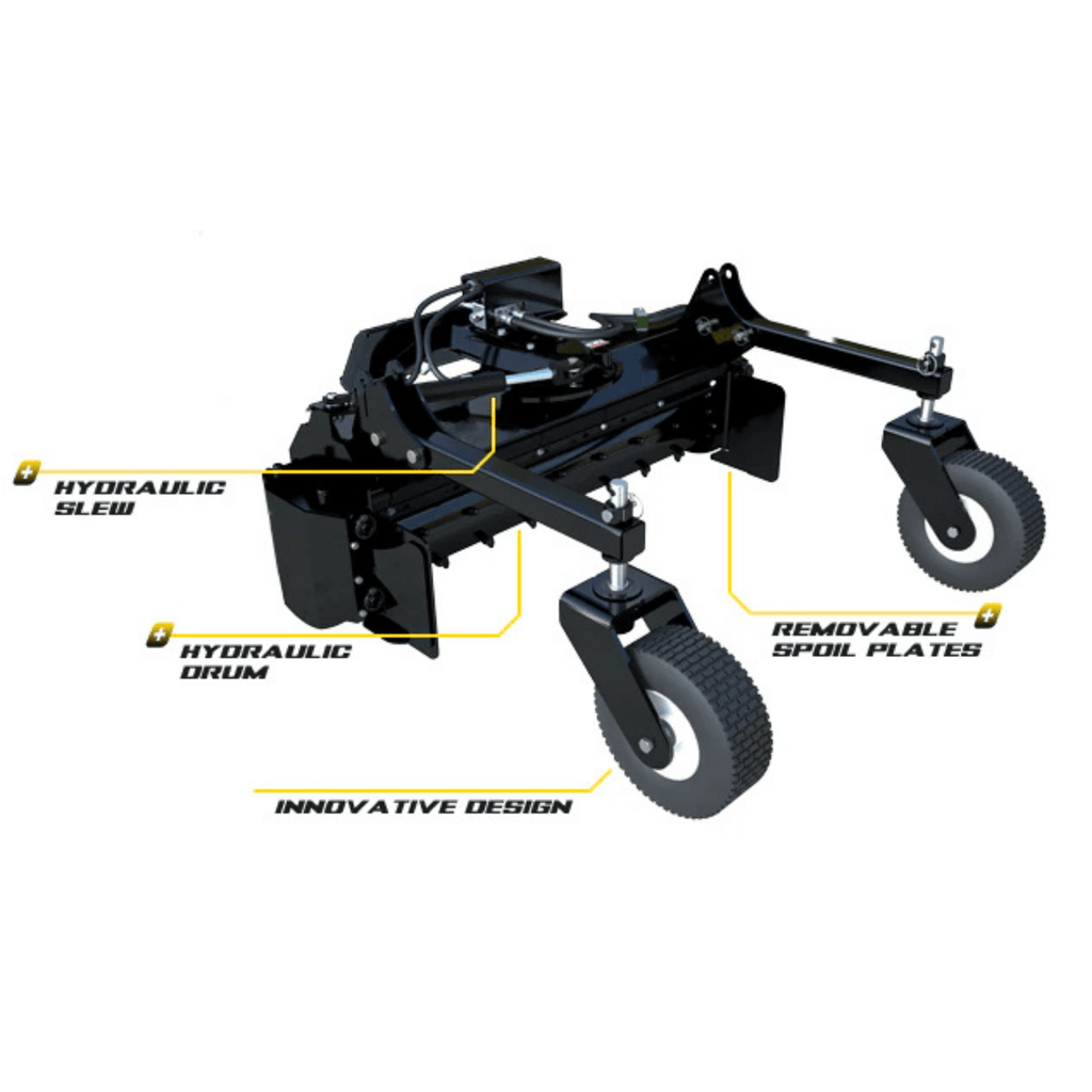 Hydraulic Angle / Slew Pro: Requires an electrical connection to switch between "Spin Drum" and "Angle Rake." You must select the correct Wire Harness (7, 8, or 14 Pin) to match your machine.