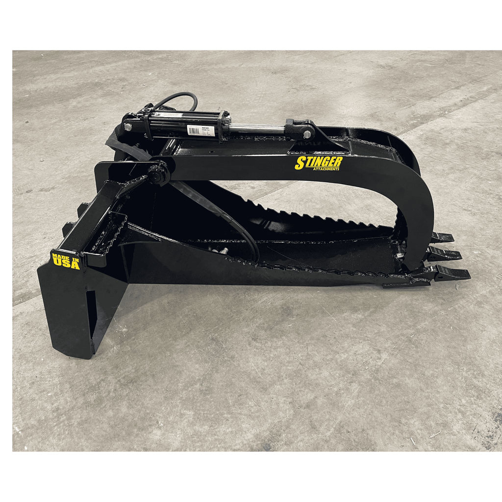The Complete Removal Tool: The Stinger Attachments Stump Grapple (STG) takes the massive leverage of our Stump Bucket and adds a powerful hydraulic clamp. Instead of struggling to balance a loose stump or rock on the end of your spade, the STG allows you to Dig, Pry, and Clamp in one fluid motion.